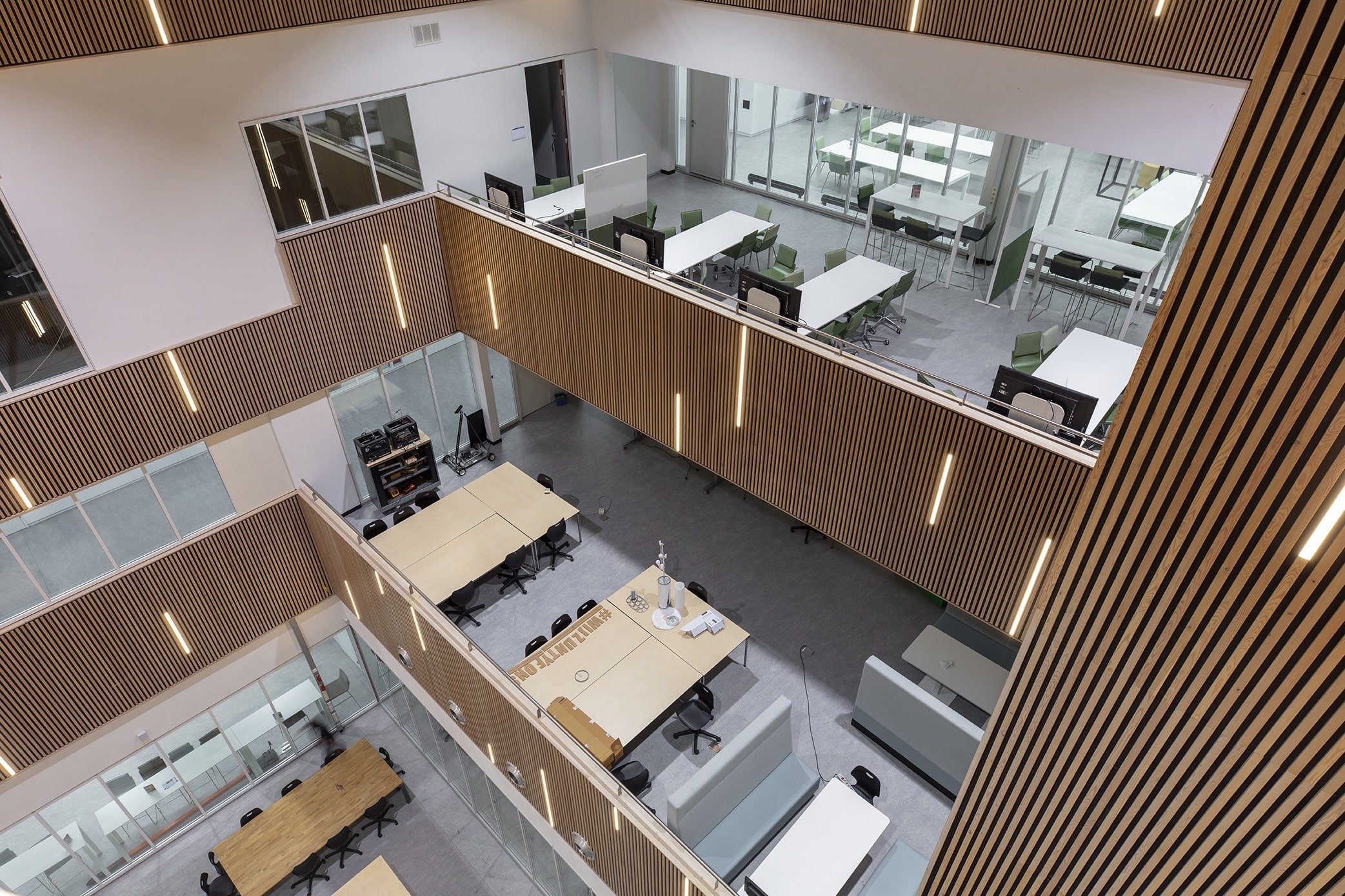 In dit moderne onderwijsgebouw vormt de vloer een belangrijk onderdeel van zowel de functionaliteit als de uitstraling van het interieur. Voor de diverse onderwijsruimtes, studieplekken en verkeerszones is een duurzaam vloerconcept gerealiseerd dat bestand is tegen intensief dagelijks gebruik door studenten en medewerkers.